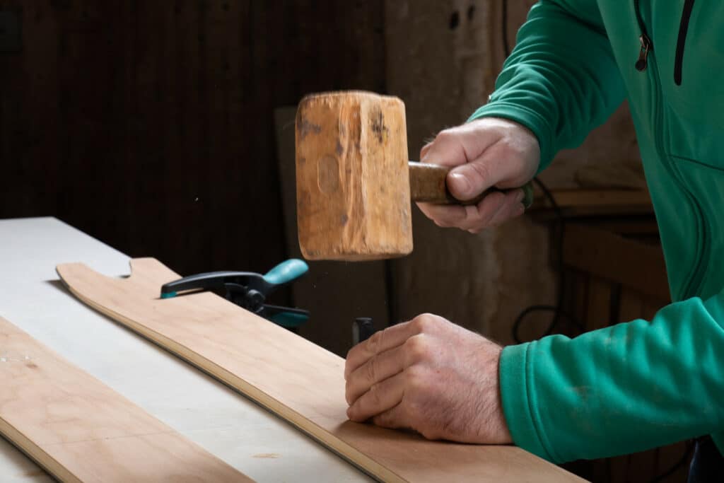 Je conçois et fabrique les noyaux de chaque paire de skis en bois dans mon atelier. J’applique une rigueur particulière au contrôle de mes réalisations. Effectivement le moindre défaut dans un noyau nuirait à sa résistance.